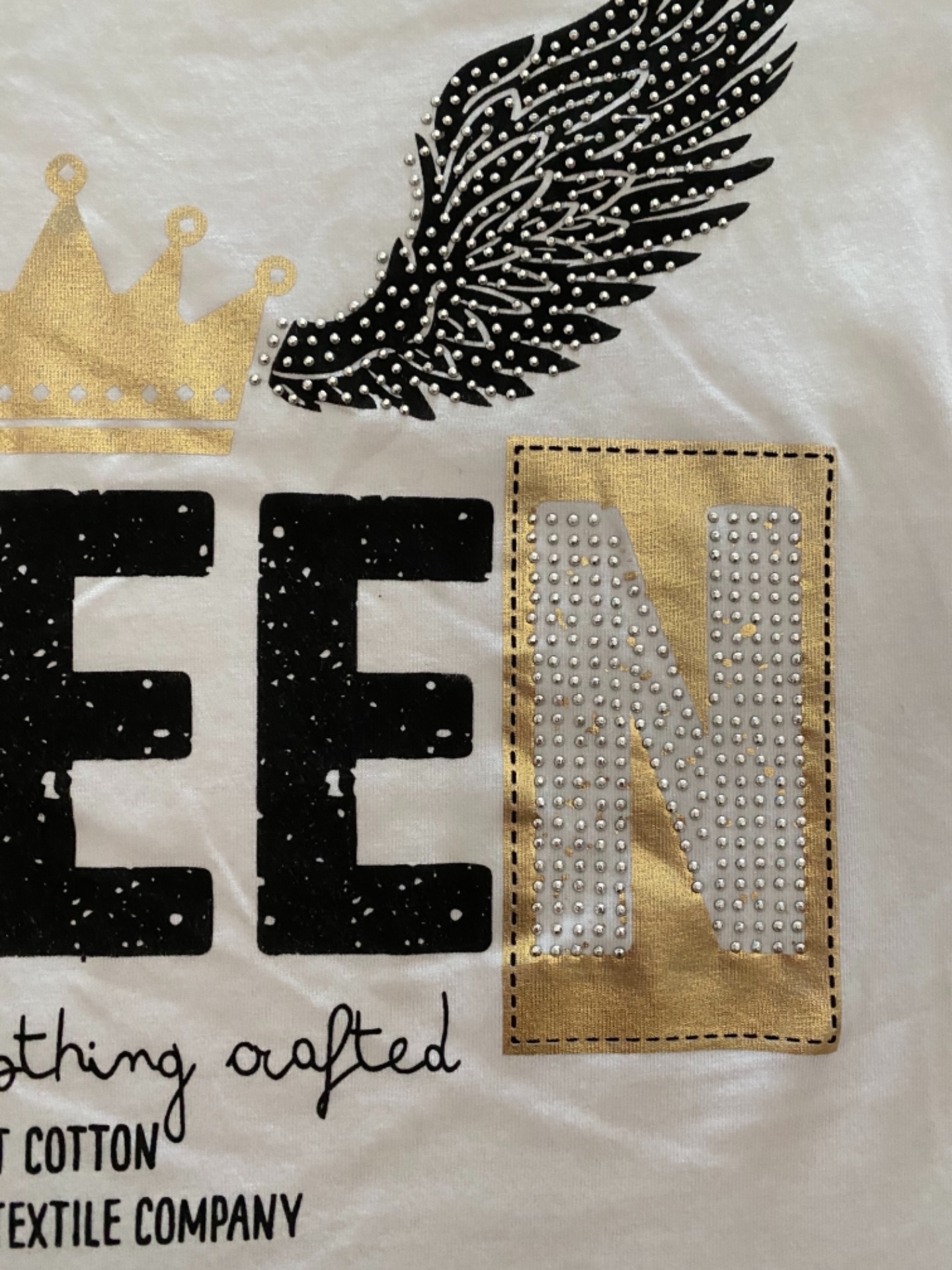 Camiseta de manga corta, color blanco con estampado de tachuelas.