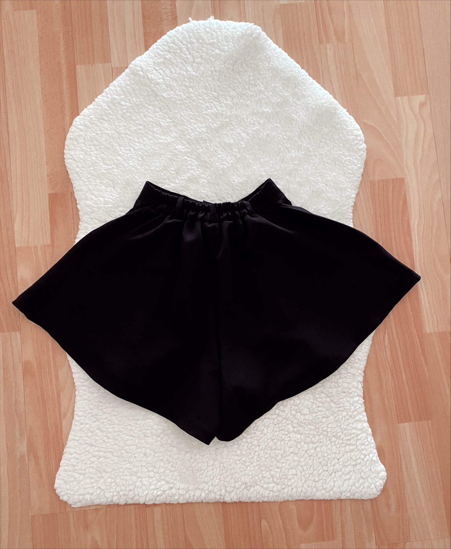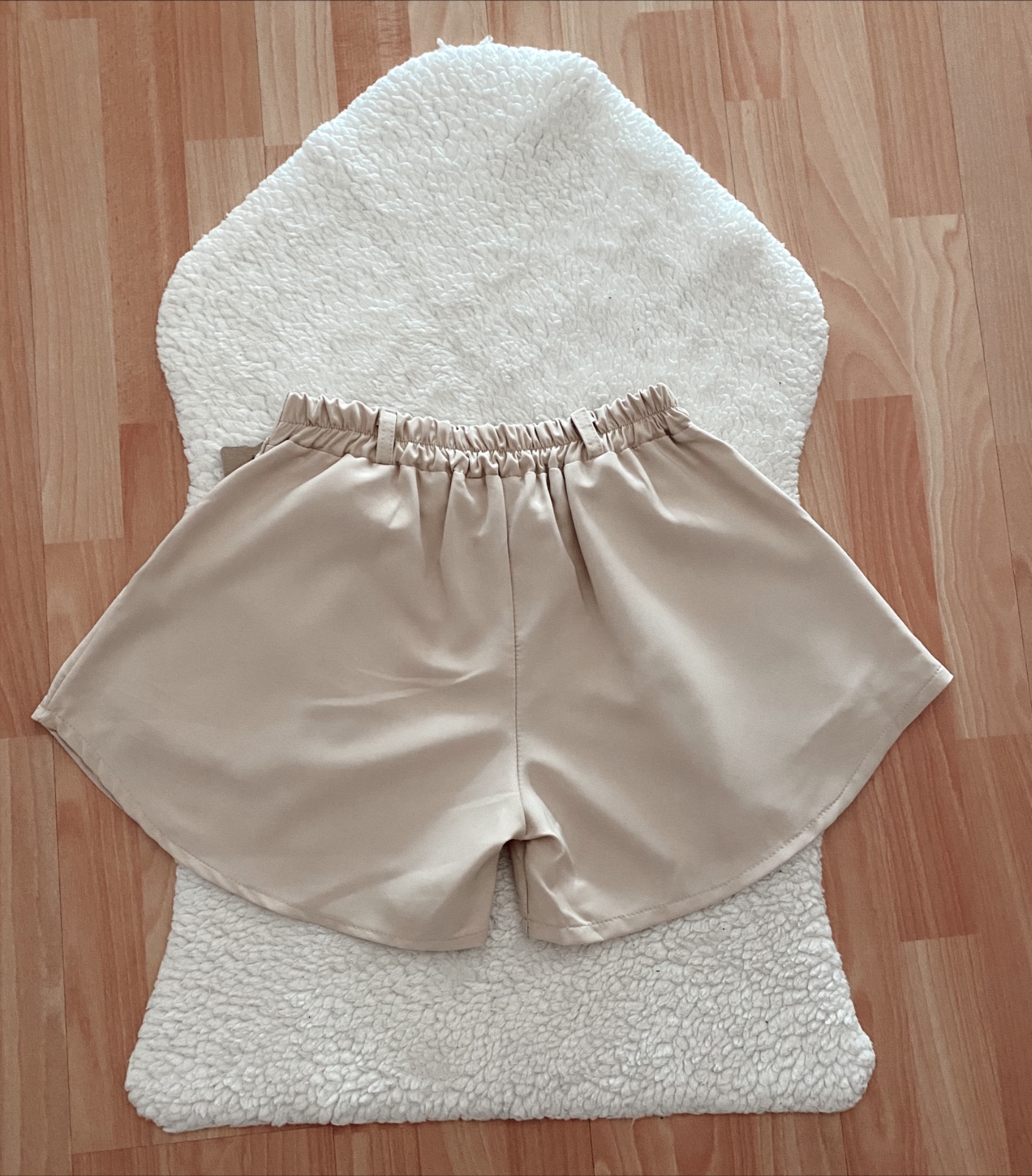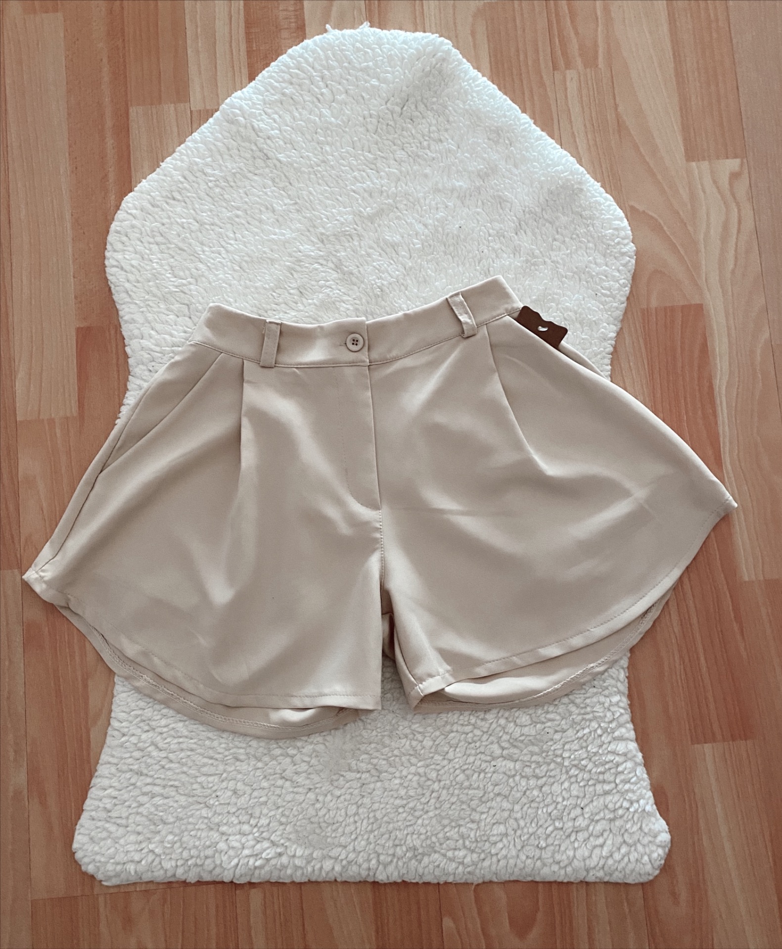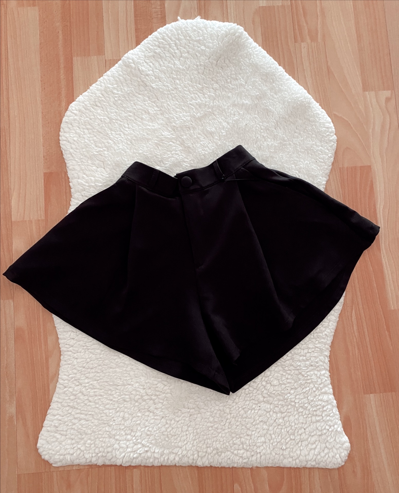 Short acabado satén, ancho acabado volante, tiro alto.2 colores disponibles: negro, beige.Talla XS/S.